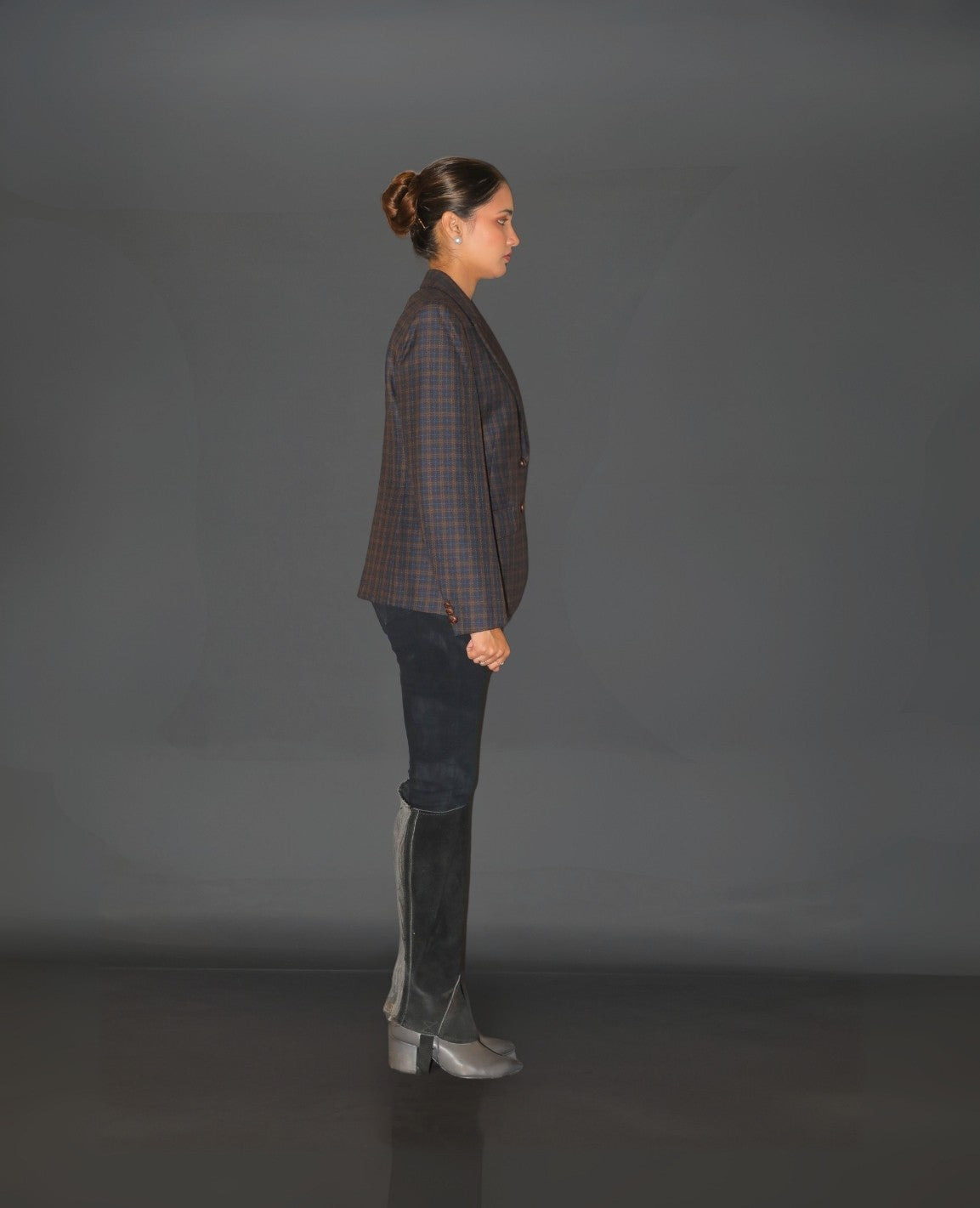 This black formal blazer, which is made of high-quality tweed fabric, redefines classic style. Its elegant silhouette and textured finish provide classic sophistication, making it ideal for both formal events and smart daily wear.